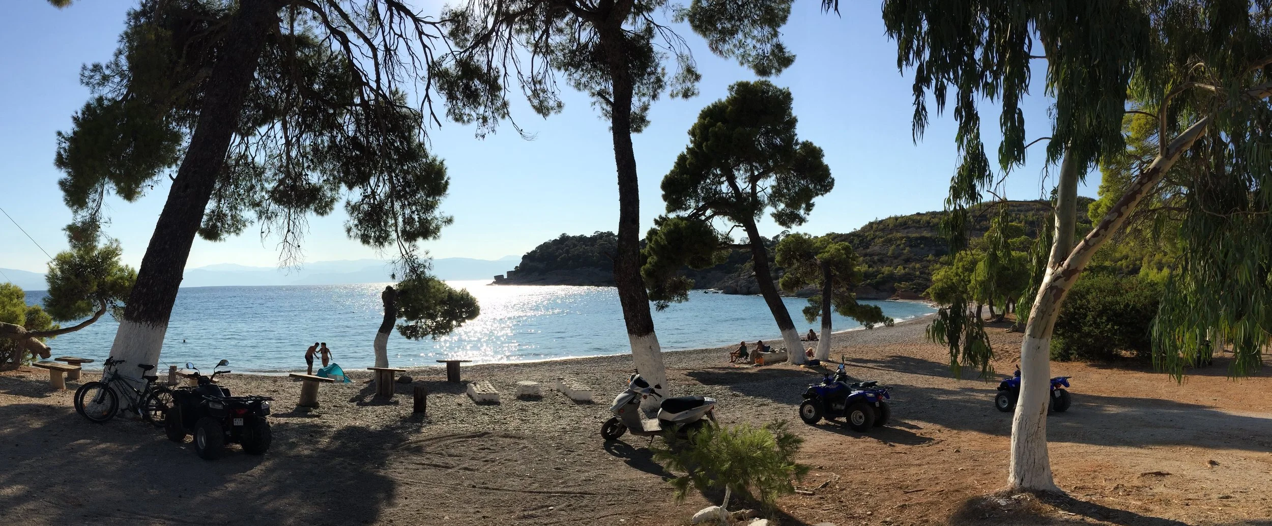 Auf Spetses: Wer früh starten will, leiht sich bei Lavros ein Moped oder Quad und fährt einmal rund um die Insel. Die Strände Anargiri und Paraskevi geben einen wundervollen Blick auf den zweiten Finger der Peleponnes und laden zum baden ein. Ein Taverne steht zum Mittagessen bereit.